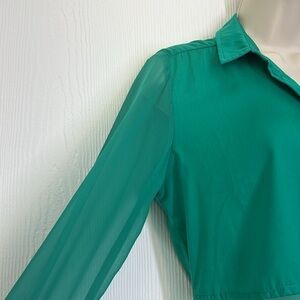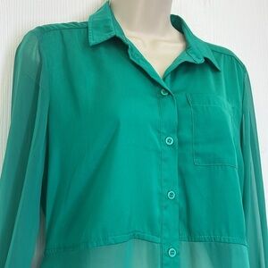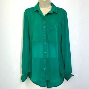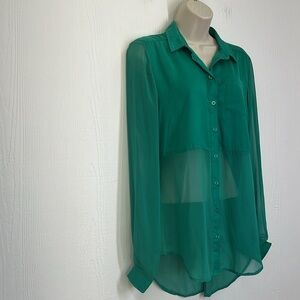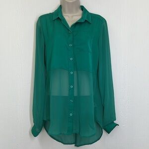 Free People - Beat Of Both Worlds Sheer High Low Green Button Down Blouse Size XS