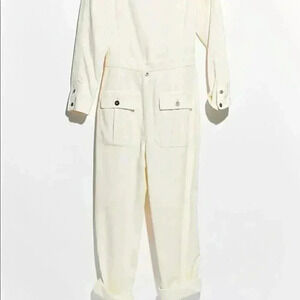 Free People Better Together Coverall Jumpsuit In Ecru Color, Size Small New Without Tags, Gorgeous Belted Jumpsuit Featured In A Soft Woven Fabrication With Exaggerated Pocket And Seaming Detail. Zip-Down Front With Added Button Placketbutton Cuff At Sleevestapered LegsLess