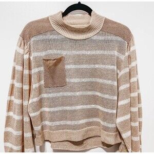 Free People Between The Lines Lightweight Pullover Sweater Size Medium in Beige - EUC