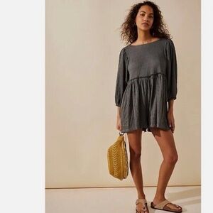 Free People Beyond Obsessed Romper Size Medium Pewter Gray