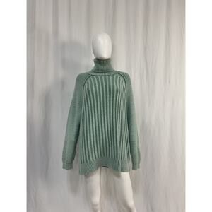 Free People Big City Green Cotton Turtleneck Sweater Size S