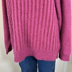 Free People Big City Turtleneck Sweater Mulberry Garnet Ribbed Oversized Sz XS