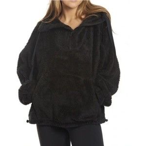 Perfect for outdoor adventures or cozying up on the couch, this plush and fuzzy pullover is featured in an oversized design with a high neckline.