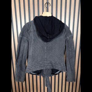 Free People Biker Jacket Medium Gray Black Motorcycle Hooded Belted Railroad