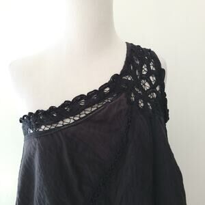 Free People Billie Battenberg Lace Dress One Shoulder Black A Line Women Medium
