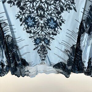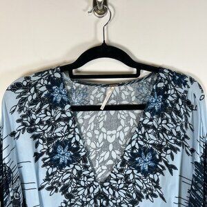 Free People Bird of a Feather Blue Oversized V-neck Top size Small Boho Spring