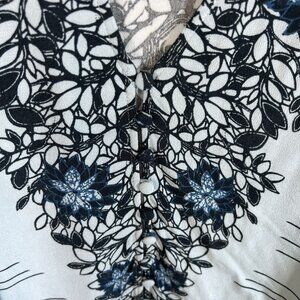 The Free People Bird of a Feather Blue Oversized V-neck Top in size Small is a stylish boho blouse perfect for spring. Made from rayon fabric, this long-sleeve top features a floral pattern in blue, with a relaxed fit and balloon sleeves for added flair. The V-neck and pullover closure make it easy to wear, while the tunic style adds a touch of bohemian flair. Whether accessorized with statement jewelry or dressed down for a casual look, this top is a versatile addition to any wardrobe.
