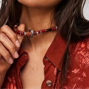 Free People Birdie Choker Necklace Brown Silver Neutral Bohemian Layering NEW