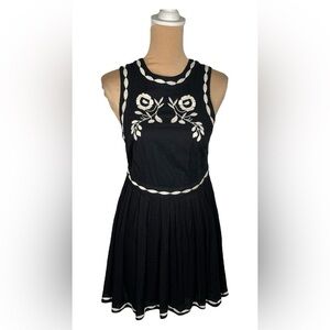 Free People Birds of a Feather Black Embroidered Mini Dress Size 2