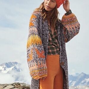 Free People Birds of a Feather Knit Cusco Combo Alpaca Wool Blend Cardigan size Medium Large