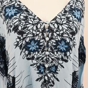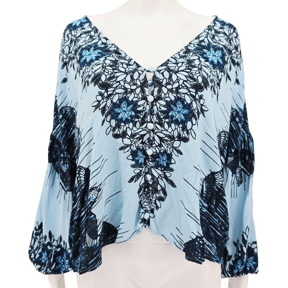 Free People Birds of a Feather Oversized Boho Top Blue Large