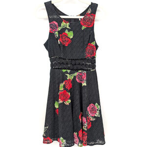 Free People Black Asian Rose Boho Whimsigoth Lace Cutout Crochet Mini Dress