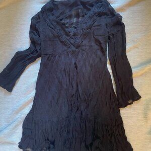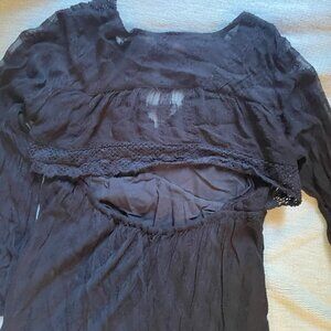 Elegant black backless dress. Features lace details. Long sleeves. Perfect for evening wear.