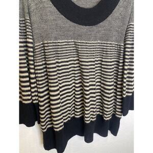 Free People dolman sleeve striped long sleeve pullover sweater. Black & beige/cream striped. Scoop neck. Babydoll style. Knitted.