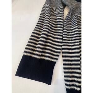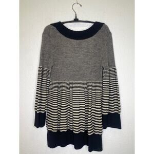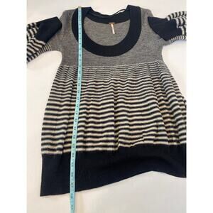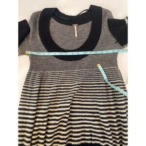 Free People Black Beige Scoop Neck Striped Sweater Sz M Wool Pullover