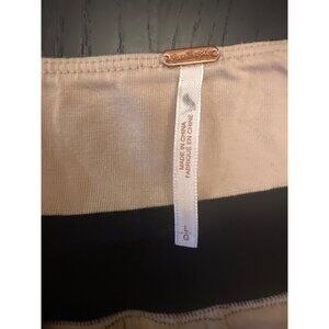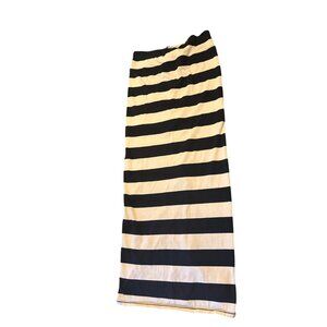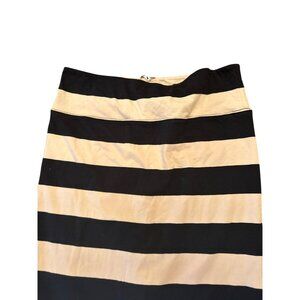 This striped pencil skirt offers a refined look suitable for professional settings. Its elegant design, highlighted by alternating black and beige stripes, ensures a stylish yet understated appearance.