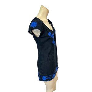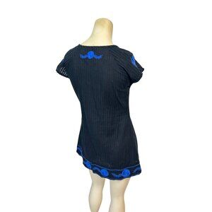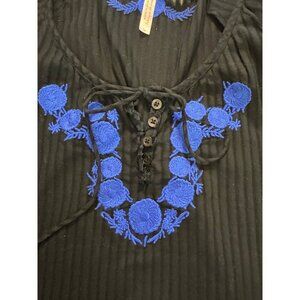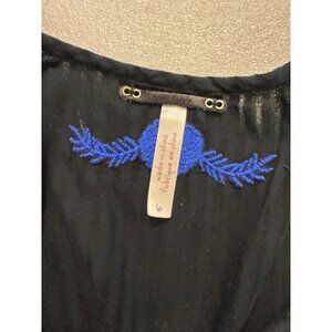 Free People Black & Blue Embroidered Boho Top Size 4 6
