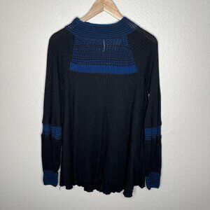 Free People Black Blue Snow Day Knit Thermal Top Medium