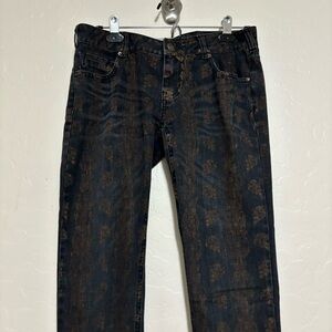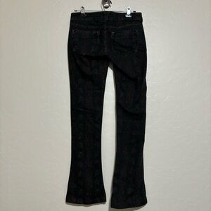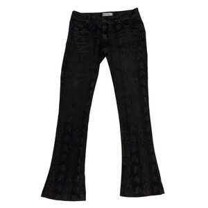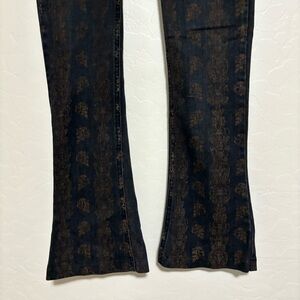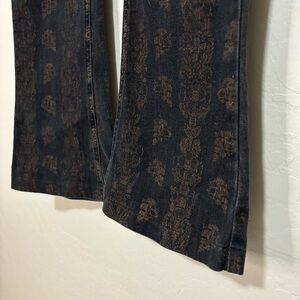Free People Black Bronze Batik Flare Leg Boot Cut Denim Low Rise Jeans Boho 26