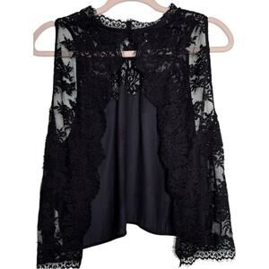 Free People Black Cami Lace Silky Satin Open Back Size Small