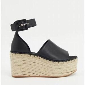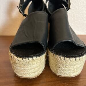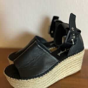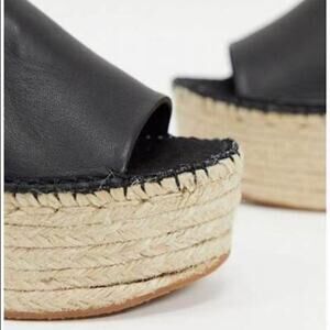 Free People Black Coastal Espadrille Leather Platform Sandals Size 6.5