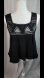 A breezy, effortlessly cool piece with a romantic twist. This airy black tank features a square Bardot neckline, sheer mesh insets with embroidered trim, and a soft flounced hem. The open-back design with a buttoned keyhole closure adds a striking finish—perfect for layering or warm-weather wear.