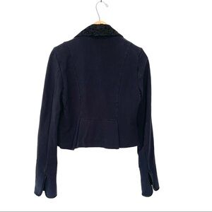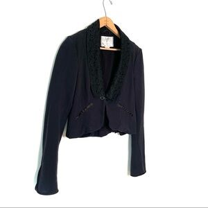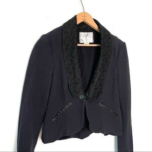 Excellent condition! Free People black cotton knit stretch lace collar cropped tuxedo jacket. Fitted.