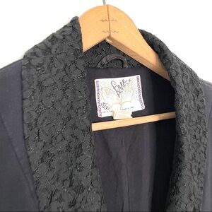 Free People | Black Cotton Knit Stretch Lace Collar Cropped Tuxedo Jacket
