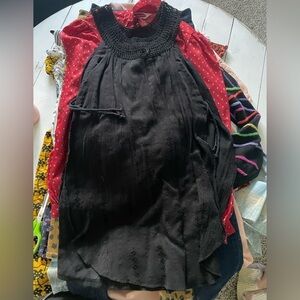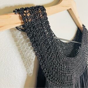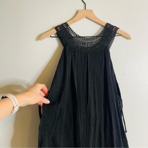 Free People Black Crochet Round Cleopatra Neck Tunic Mini Dress Coverup