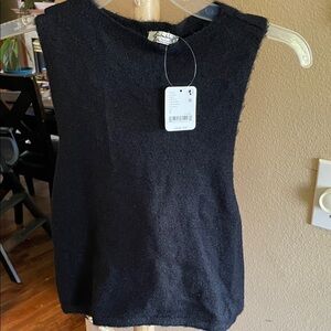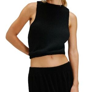 Stylish black crop top. Sleeveless design. Perfect for casual wear.