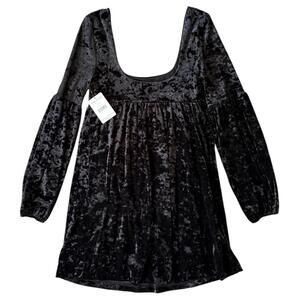 Free People Black Crushed Velvet Babydoll Mini Dress – NWT – Size S