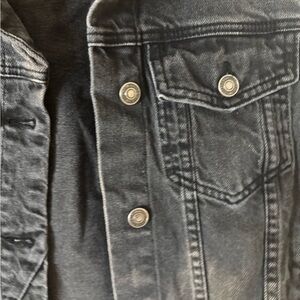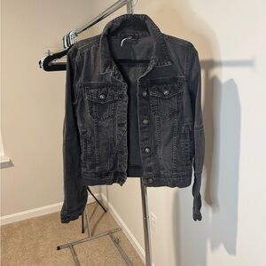 Stylish black denim jacket by Free People. Ideal for casual wear. Versatile and trendy.