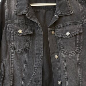 Stylish black denim jacket with button details. Perfect for casual wear.
