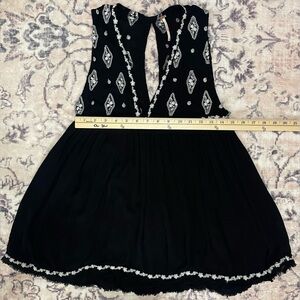 Free People Black Diamond Embroidered Sleeveless Tunic Top Size XS