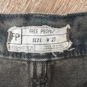 Free People Black Distressed Button Fly Jean Shorts Raw Hem Split Seam
