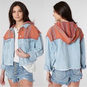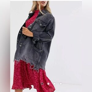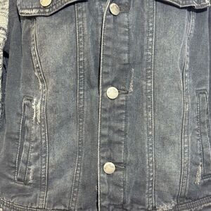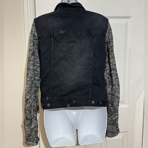 Free People Black Distressed Denim Jacket with Knit Sleeves size M