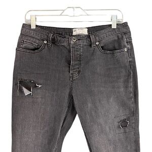 Free People Black Distressed Fishnet Mesh Skinny Jeans Size 28