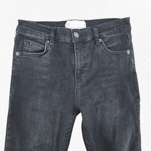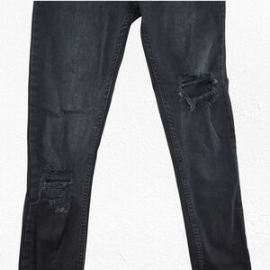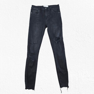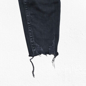 Free People Black Distressed Raw Hem Slim Skinny Jeans Mid Rise Stretch Size 25