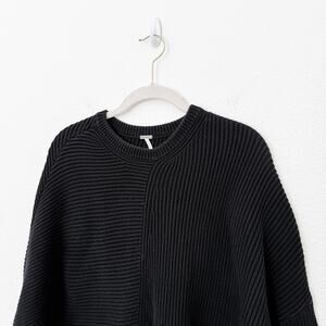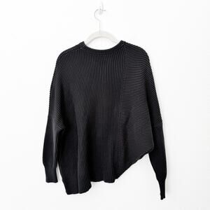 [Free People] Black Downtown Sweater Ribbed Knit Asymmetrical Hem Oversized XS