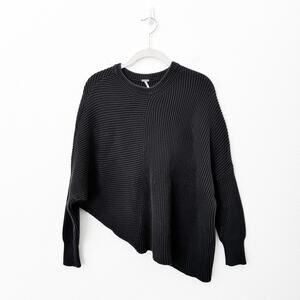 Free People Sz XS Black Downtown Sweater Ribbed Knit Asymmetrical Hem Oversized