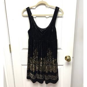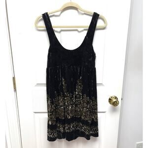 Free People Black Dress, Crushed Velvet Mini, Metalic Sequin Tank, Swing, Size S