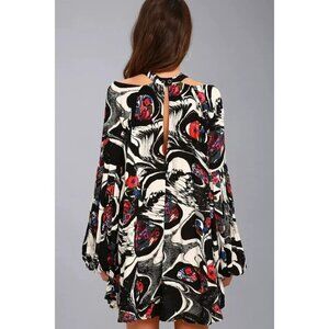 Free People Black Drift Away Tunic Dress XS Cold Shoulder oversized flowy