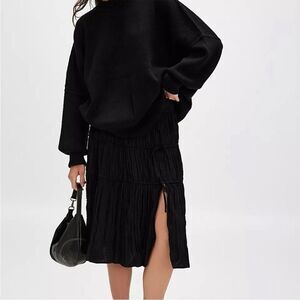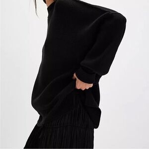 Ribbed mock neck pullover sweater featured in a tunic length.