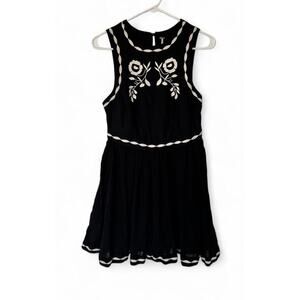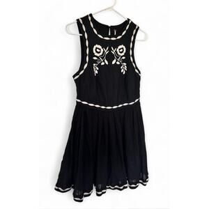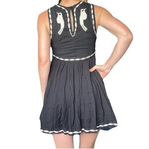 Free People Black Embroidered Birds Of A Feather Dress Women’s Size 4 Boho Short. Condition is Pre-owned - Good.