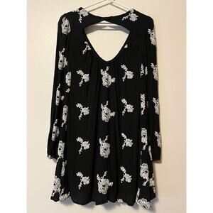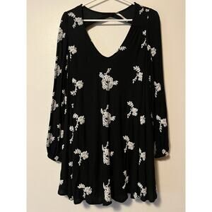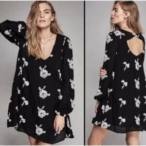 Free People Black Embroidered Emma Austin Mini Swing Dress Sz XS Boho Babydoll
