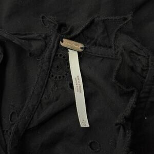 Free People Black Embroidered Eyelet Ruffle Sleeve Blouse Women’s Size L – Boho