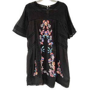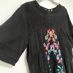 Free People Black Embroidered Lace Gauzy Mini Dress Perfectly Victorian S Boho