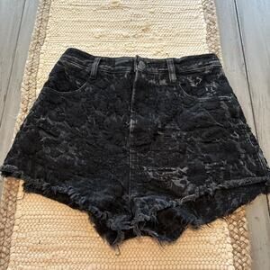 Free People Black Etienne Field Ultra High Rise Embroidered Floral Shorts Sz 26