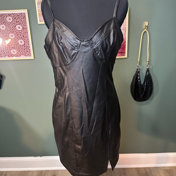Chic stretchy black faux leather dress. Ideal for evenings. PTP 16
