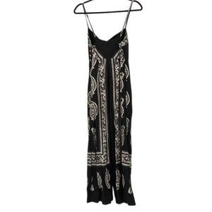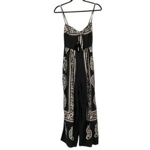 Free People Black Feel The Sun Cutout Sleeveless Linen Cropped Jumpsuit Size 6